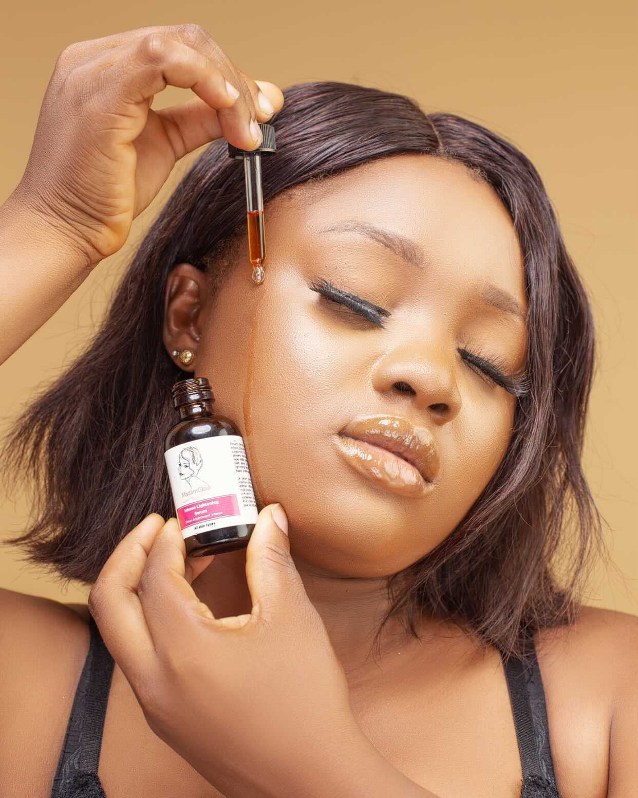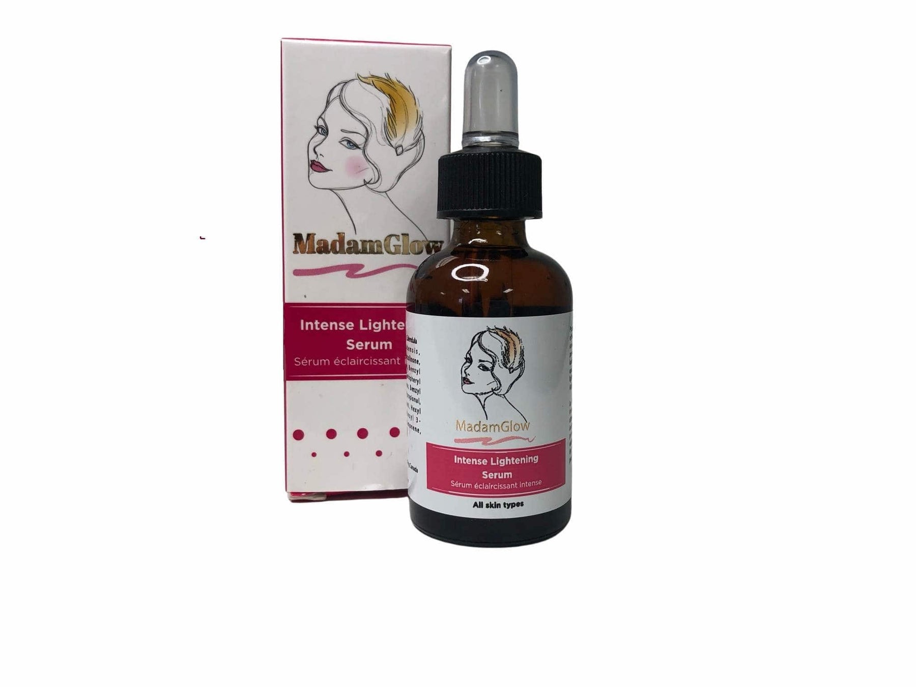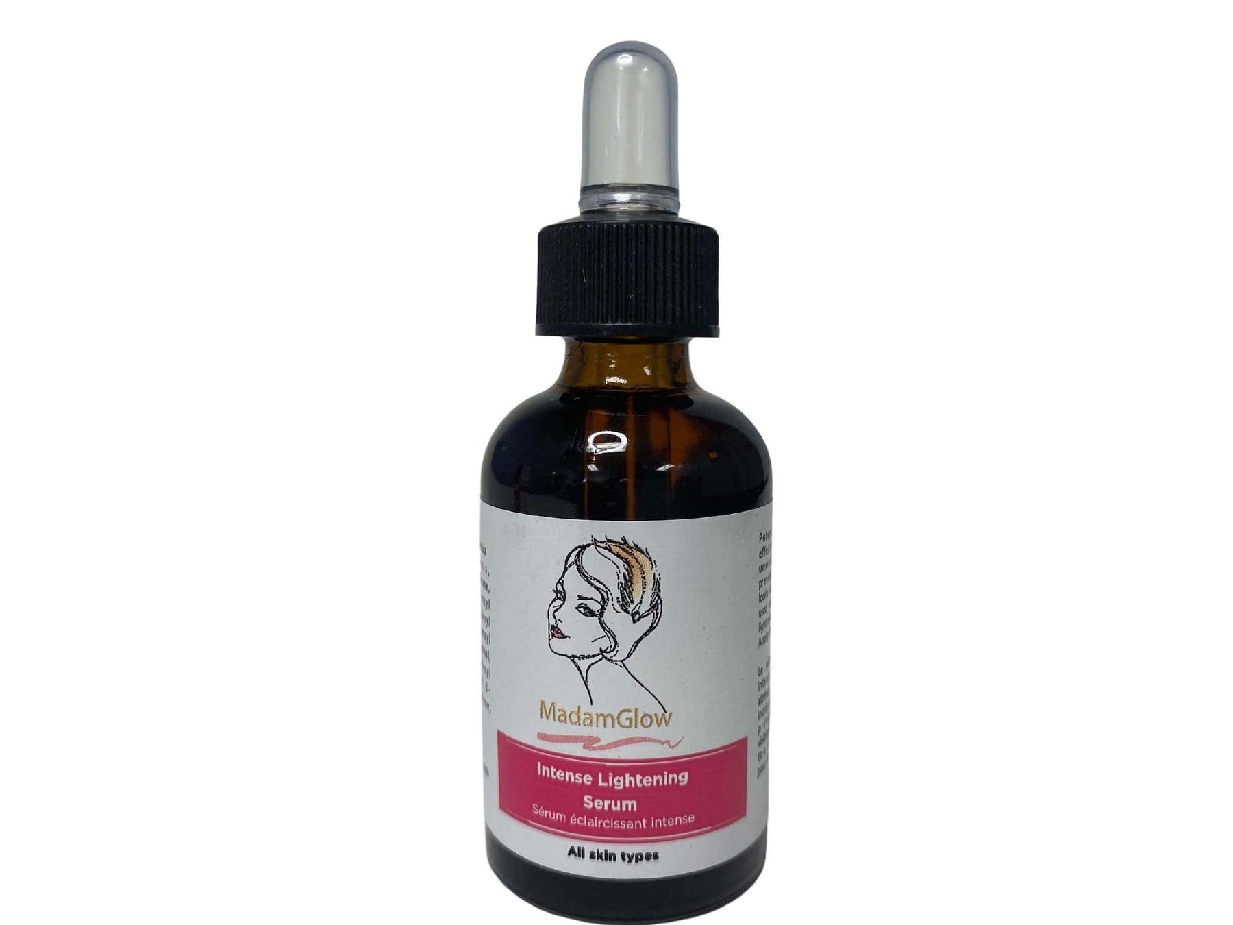 MadamGlow skin lightening serum for black skin works very fast in lightening dark spots and  hyperpigmentation on your skin. It effectives lightens age spot on the face and body. May be used alone or mixed with Madamglow maxitone lotion for faster effect.  This skin lightening serum lightens your skin quickly without any adverse effect.